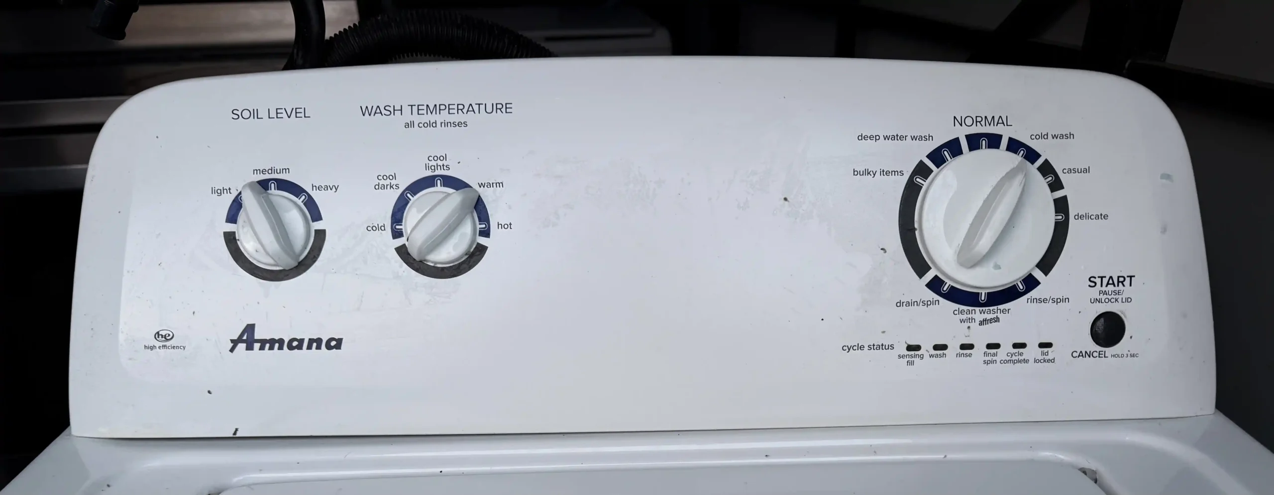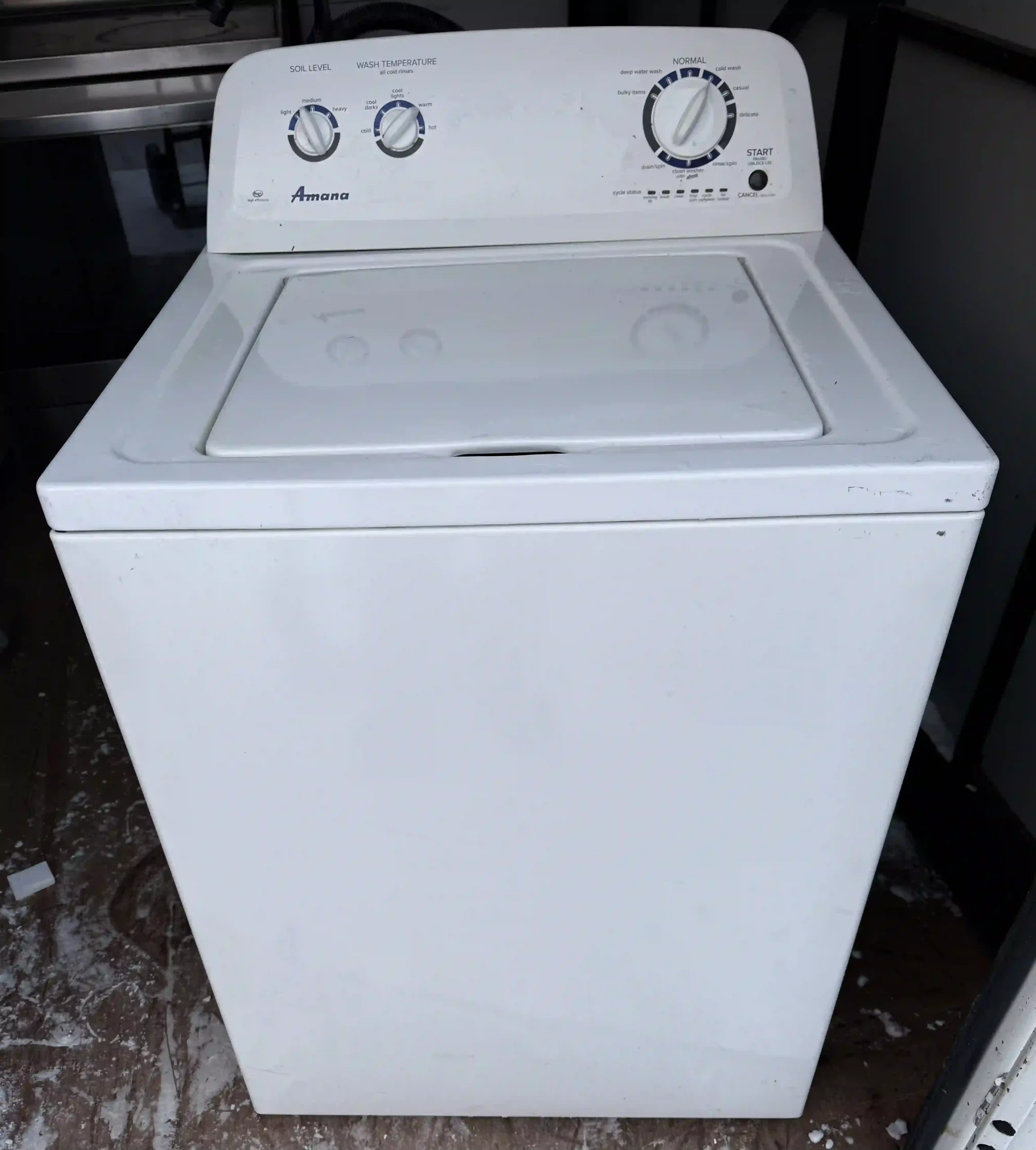 Clean, reliable Amana top-load washer. Runs strong, fills/drains/spins properly, and is ready for pickup today. Great everyday washer — simple controls and easy to use.