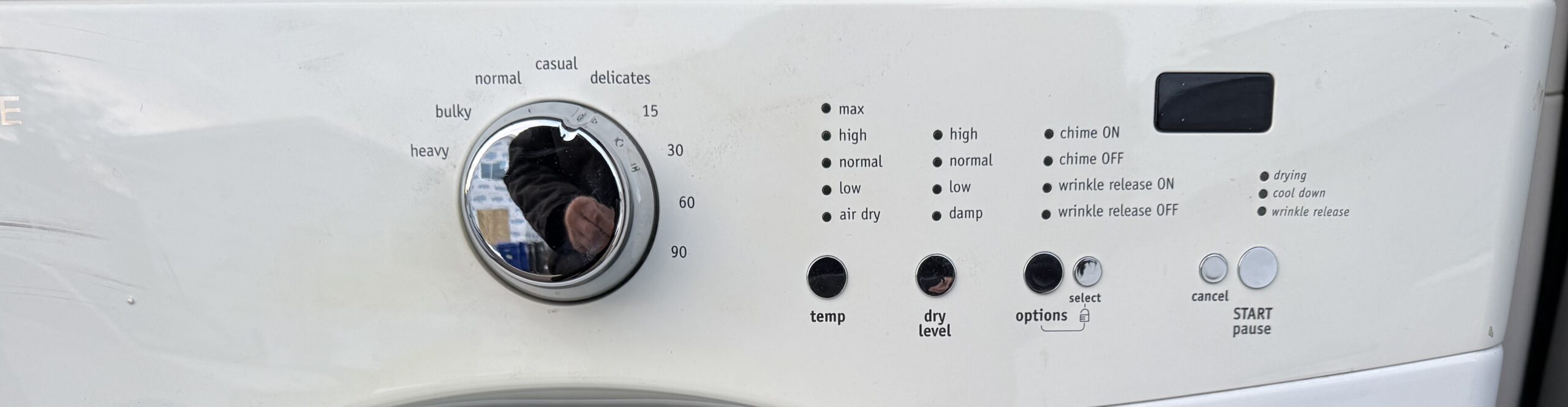 This is a matching white laundry set with a front-load washer and matching gas dryer. Nice simple setup for someone who wants a dependable set without paying big box store prices. Dryer is gas. Good basic Affinity set with the larger front-load look and easy-to-use controls.