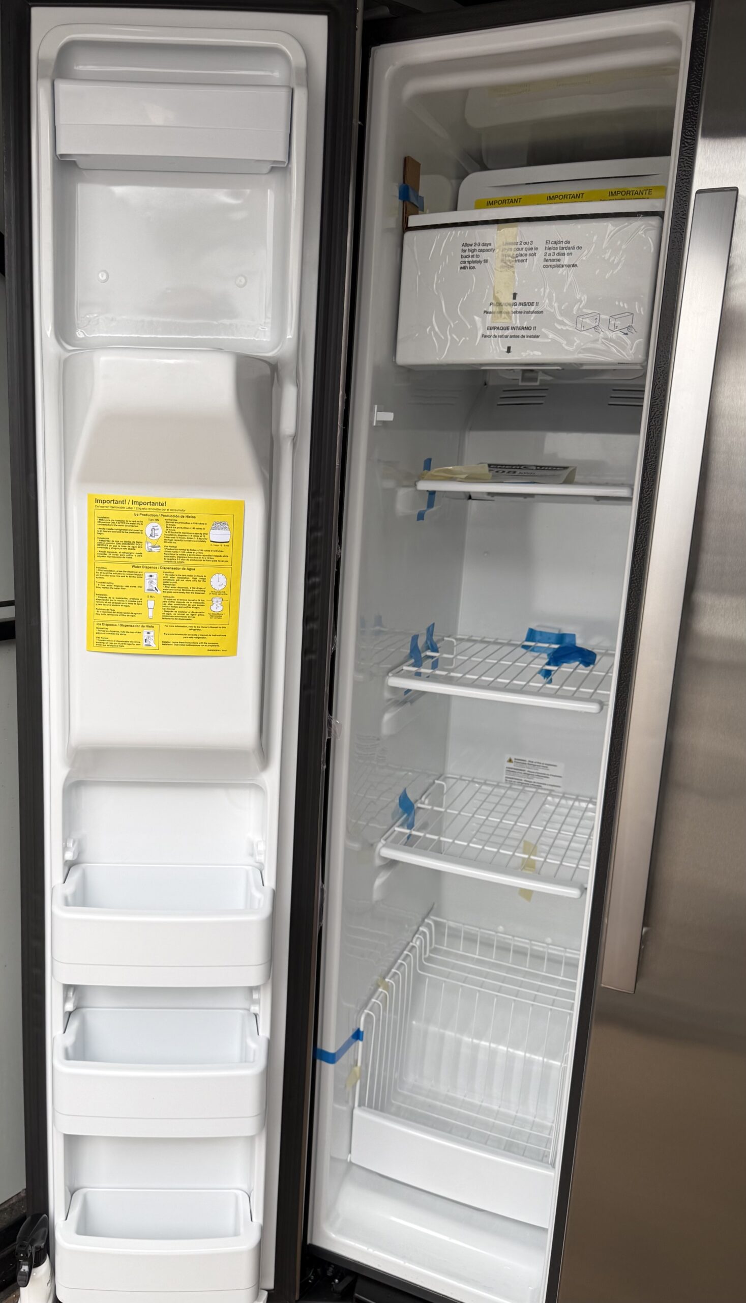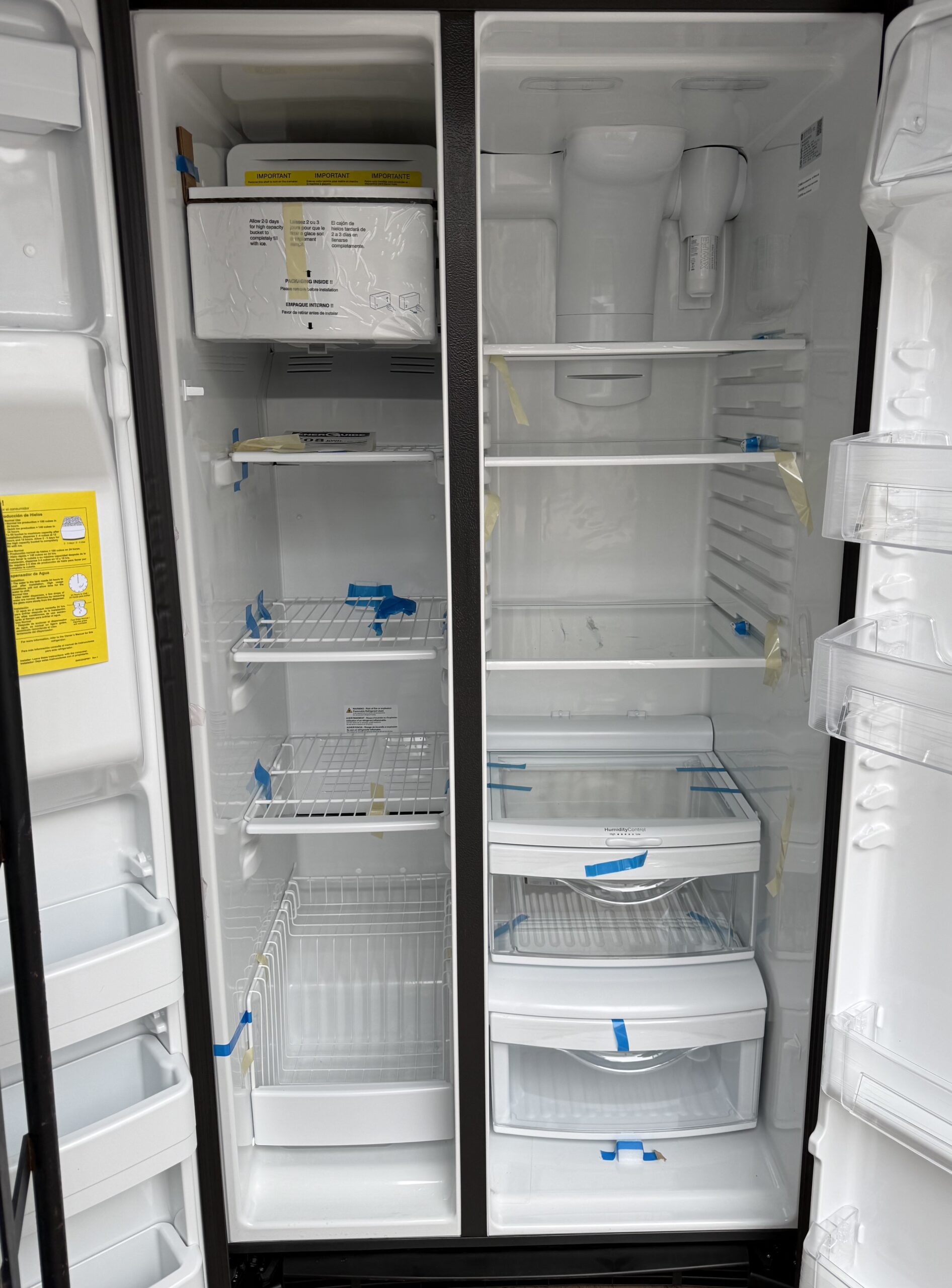 - Side-by-side layout with large capacity (approx. 25 cu ft)