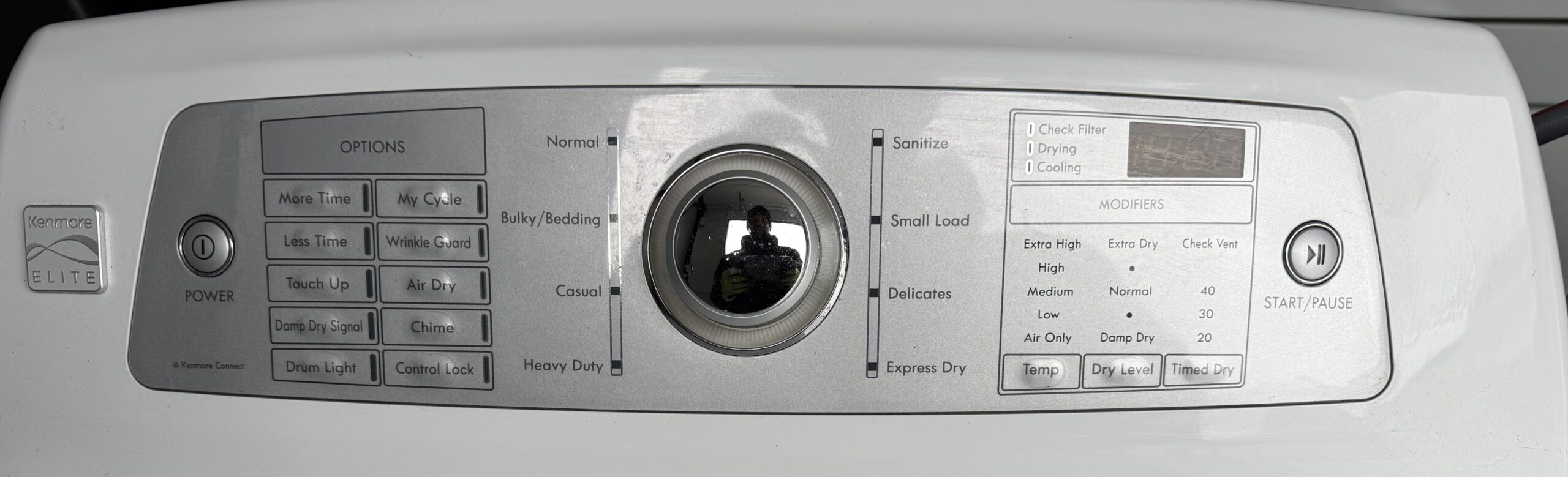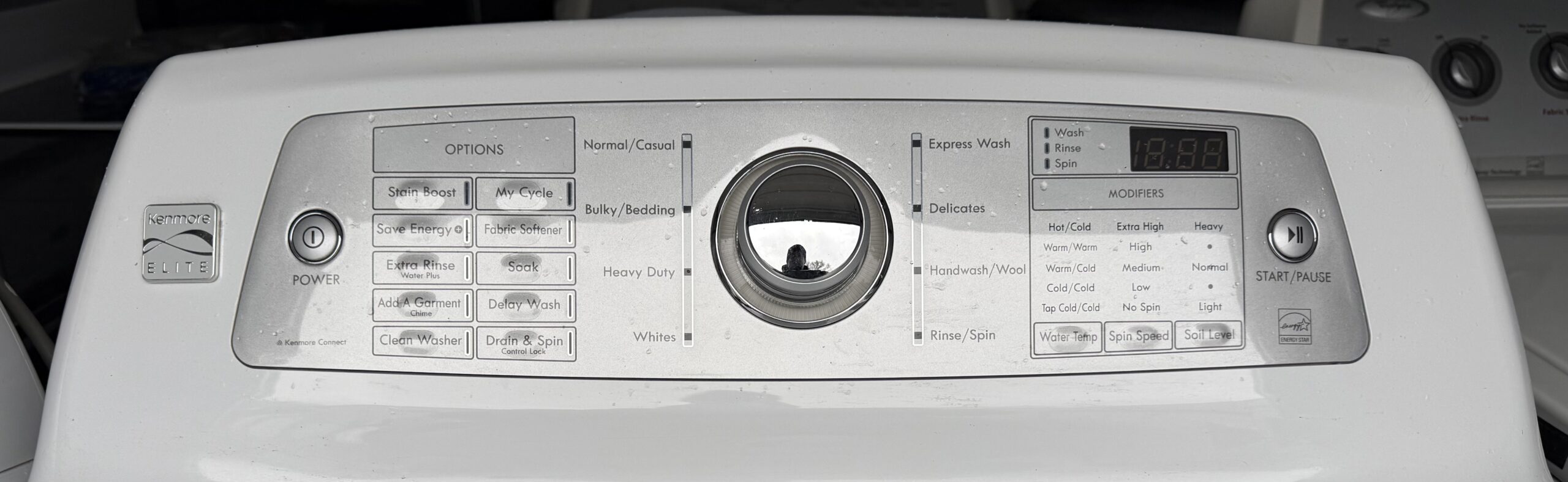 Clean, high-quality Kenmore Elite top-load washer and matching gas dryer set. These machines were built by LG for Kenmore’s premium Elite line, known for strong reliability, large capacity, and efficient performance.