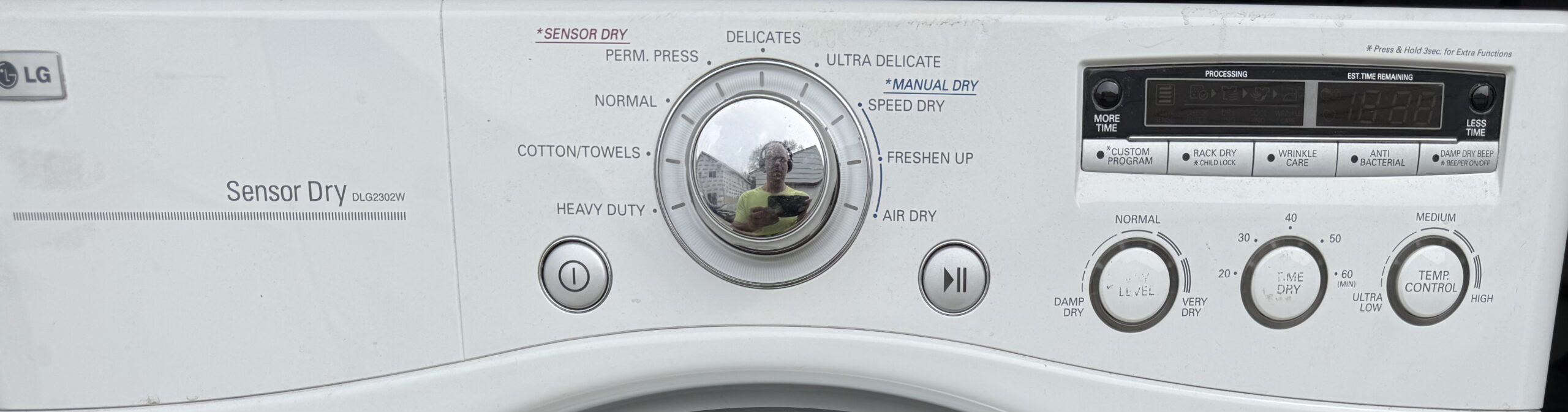 Clean LG front load gas dryer that works exactly how it should. Solid, dependable unit with a simple control layout and sensor dry options that make it easy to use.
