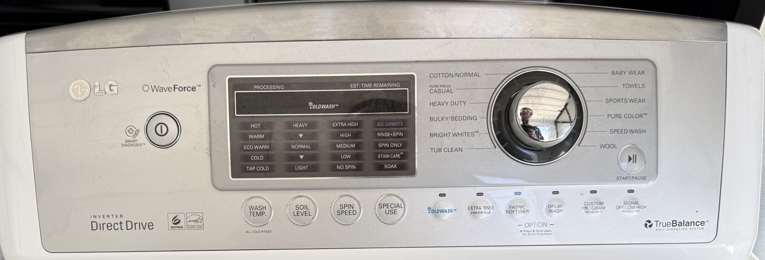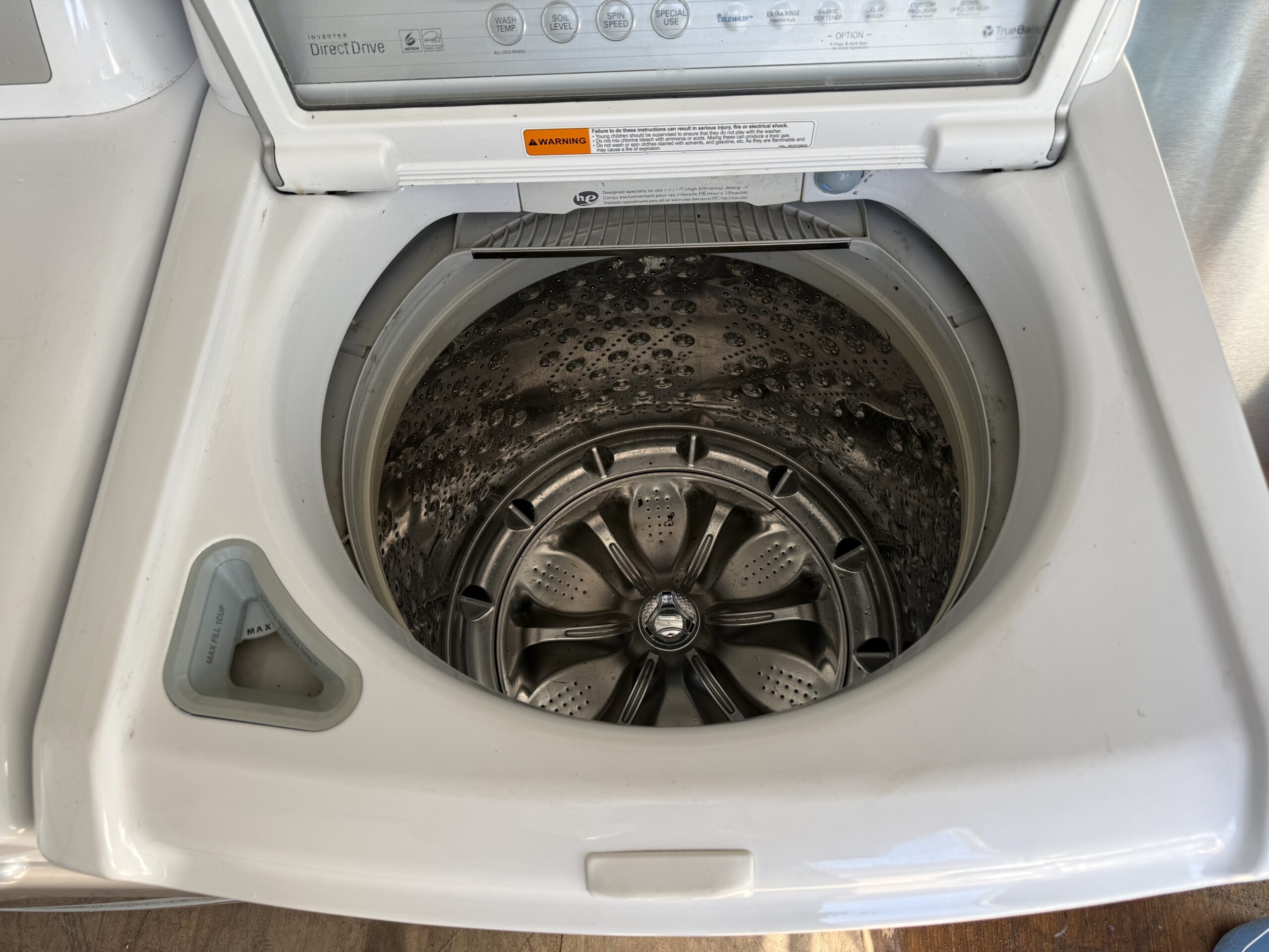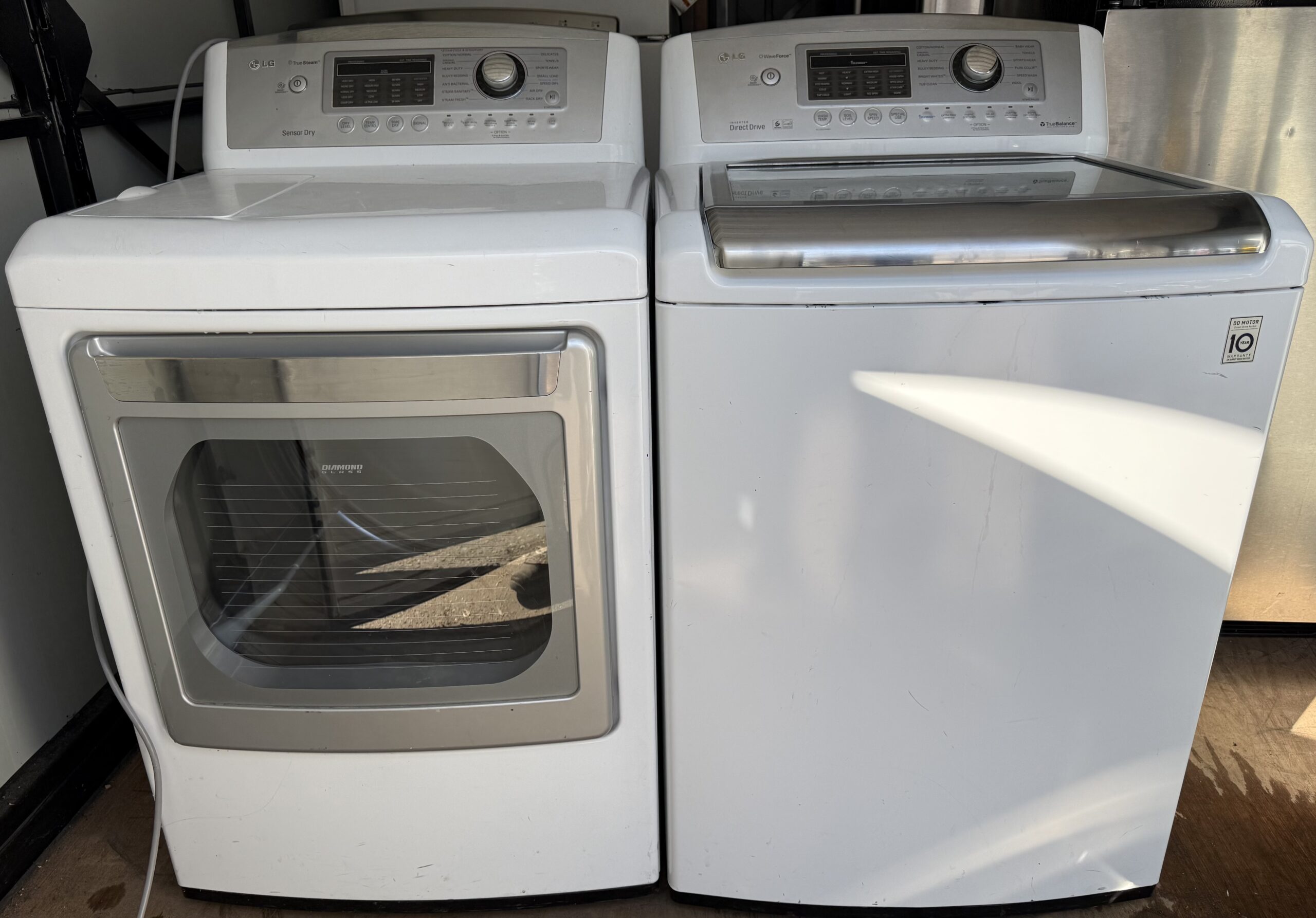 Reliable LG washer and dryer set with large capacity and solid performance. This setup is great for handling bigger loads while being gentle on clothes thanks to the top-load, no-agitator design.