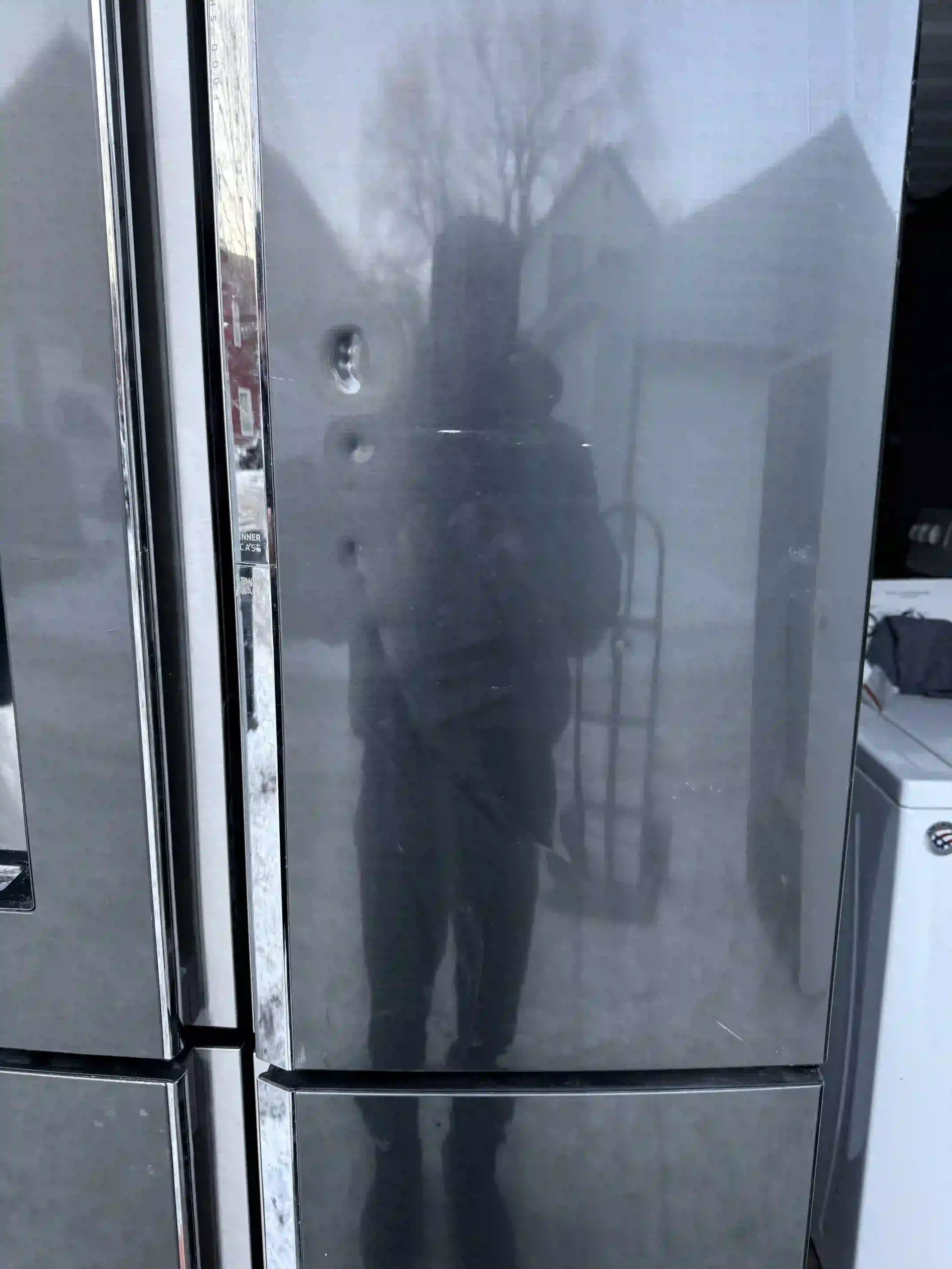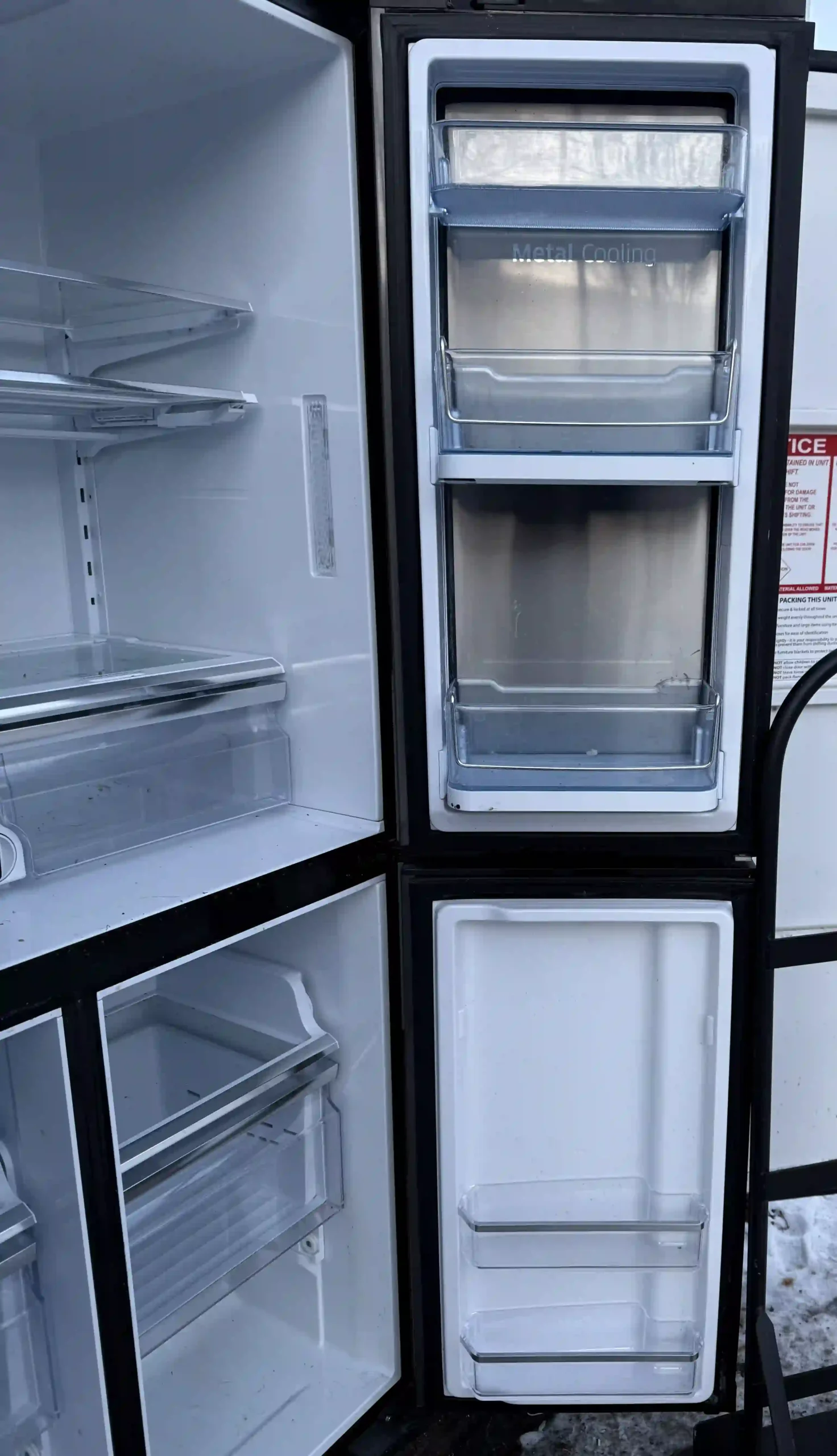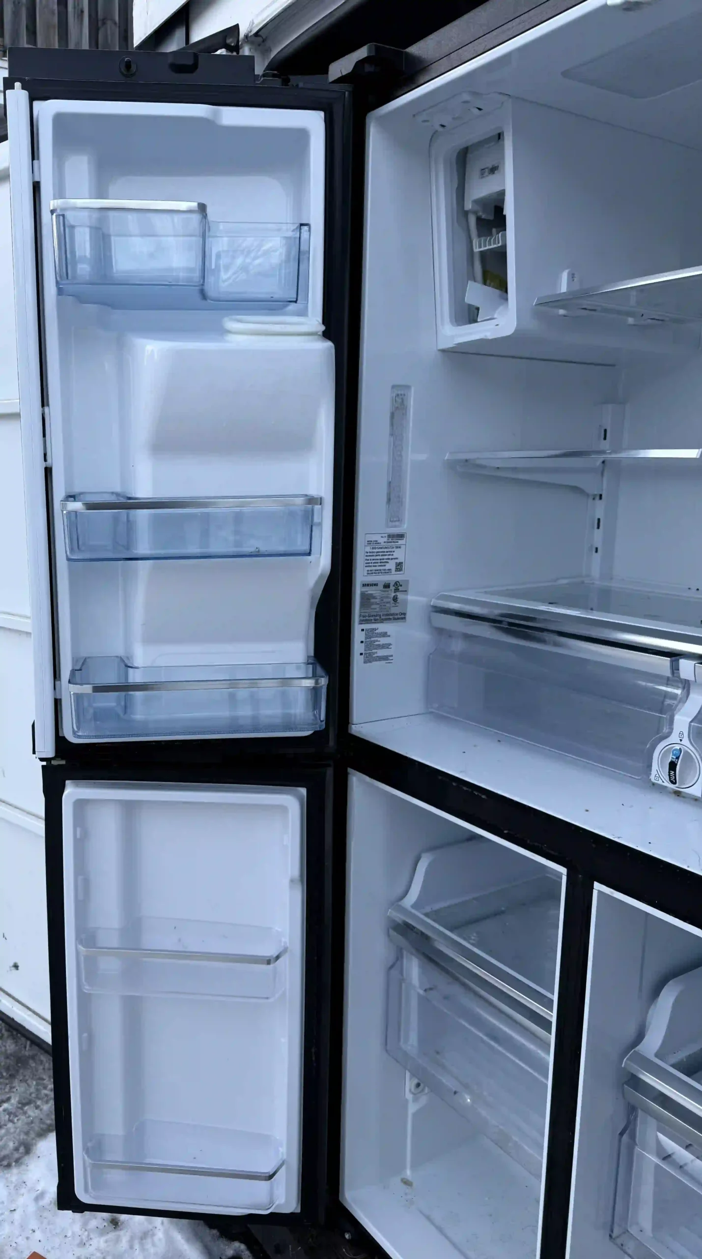 - Ice maker works, but interior ice maker cover is missing